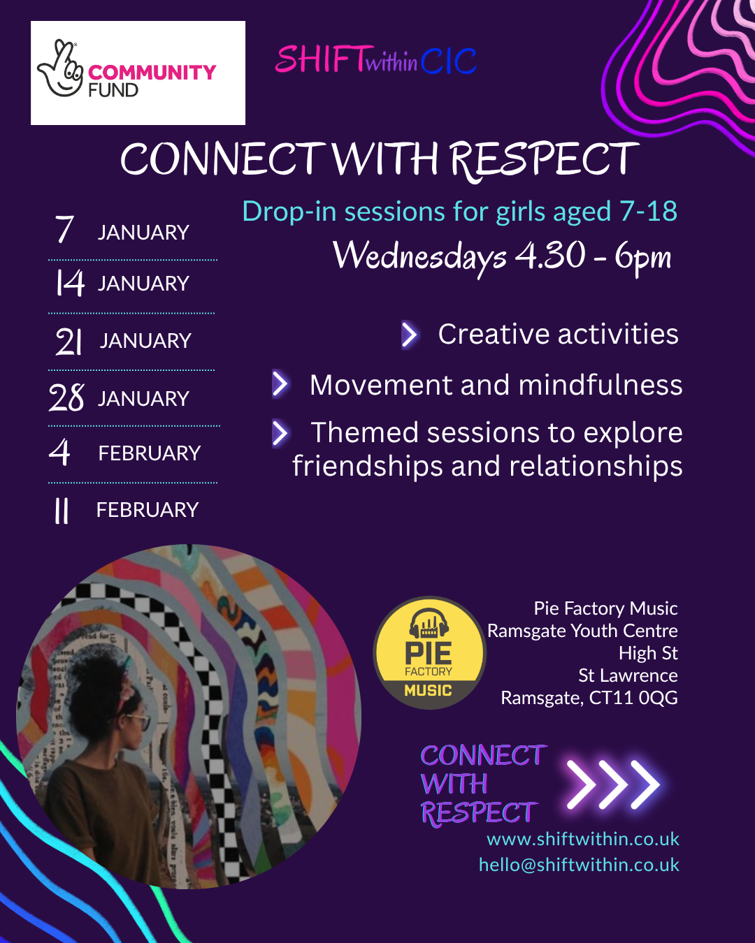 Based at Pie Factory Music, Ramsgate Youth Centre, Connect With Respect is designed to offer a safe space for connection, expression and respect.